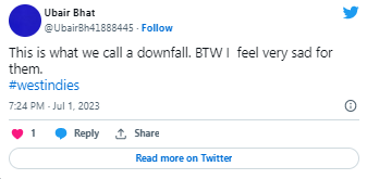 ایک اور مداح نے لکھا، "اسے ہم سچ مچ ڈاؤن فال کہتے ہیں۔” ویسے مجھے ویسٹ انڈیز کے لیے بہت برا لگتا ہے۔