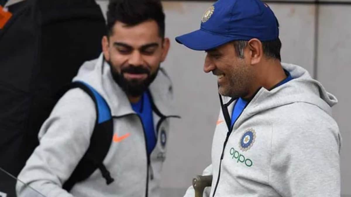 فائل تصویر ویرات کوہلی اور ایم ایس دھونی ایک ساتھ۔© اے ایف پی