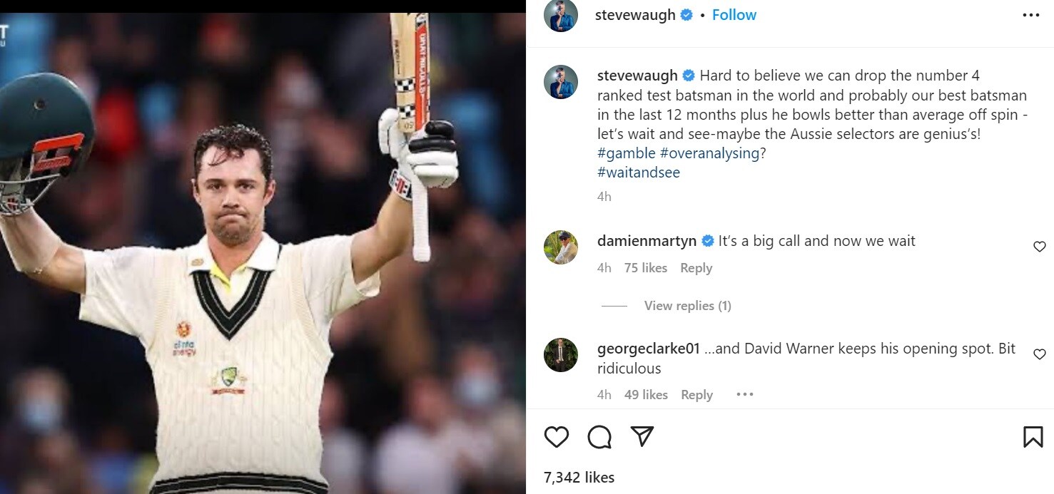 اسٹیو وا نے ٹریوس ہیڈ کو ناگپور ٹیسٹ میں موقع نہ دینے پر ٹویٹ کیا، یقین کرنا مشکل ہے کہ ہم چوتھے نمبر کے بلے باز کو ٹیم سے ڈراپ کر سکتے ہیں۔ وہ پچھلے سال ہمارے بہترین بلے باز رہے ہیں۔ وہ اوسط آف اسپن سے بہتر بولنگ کرتا ہے۔ آئیے تھوڑا انتظار کریں، ہو سکتا ہے آسٹریلیا کے سلیکٹرز جینیئس ہوں۔